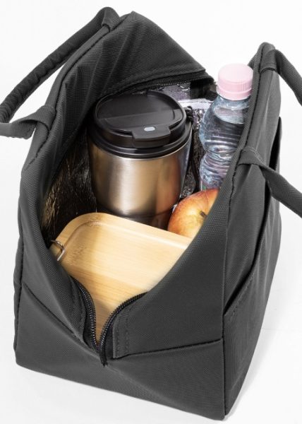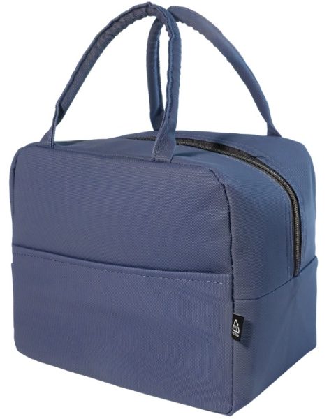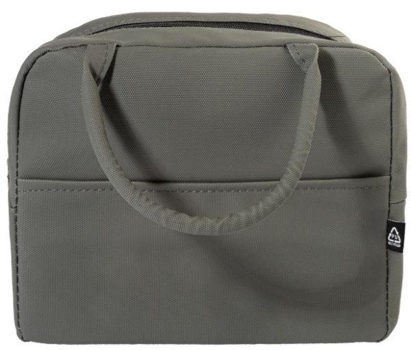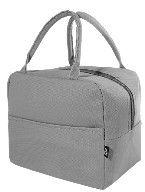 Zapinana na zamek, miękka torba termiczna z recyklingowanej skóry PU, z kieszenią z przodu i aluminiową wyściółką.